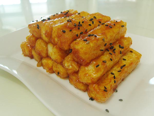 다시 팬으로 옮겨 양념소스에 버무려주세요~