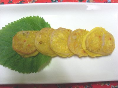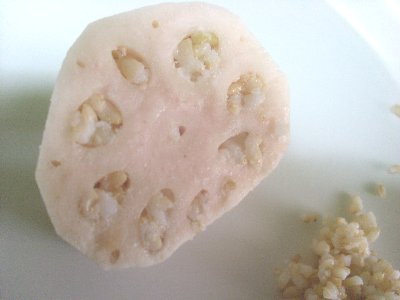 연근은 껍질을 벗긴후 준비하고 현미밥을 연근구멍속에 넣어 줍니다