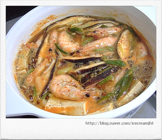 1. 새우는 깨끗이 손질한다 2. 냄비에 새우와 물을 적당히 붓고 끓인다 3. 끓으면 두부와 버섯, 각종야채를 넣고 다진마늘과 양념을 하고 중불에서 은근히 끓인다 4. 마지막에 소금으로 간을 한다