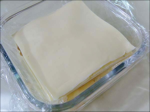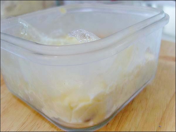 냉장고에서 굳은치즈를 꺼내