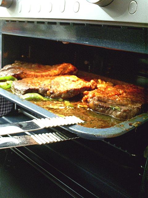 03. 오븐에 고기를 넣고서 5분이 지난후에 뒤집어