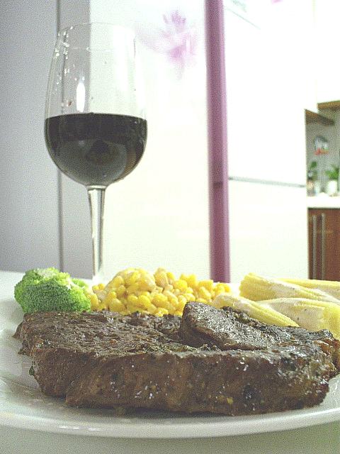 소고기 척아이롤 스테이크용, 붉은 포도주 & 올리브유 & 소금 & 통후추 & 굴소스 &