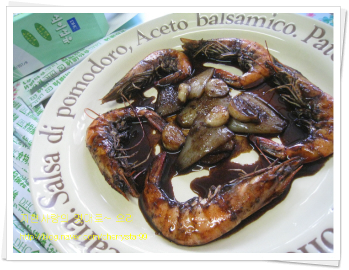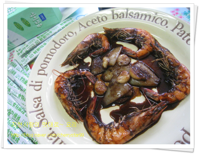 새우10마리.발사믹식초7큰술.양파.마늘3톨.소금.후추