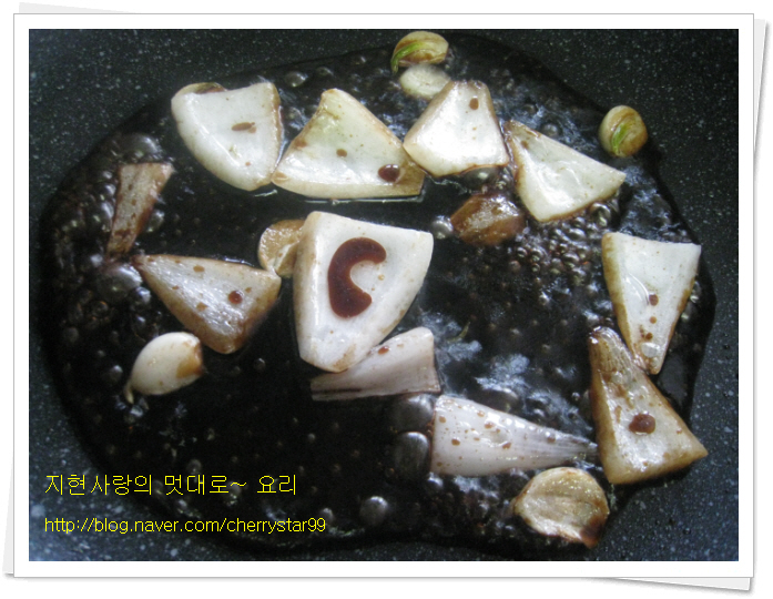 소스를 너무 많이 졸이지 마시고 자박하게 졸여 줍니다.