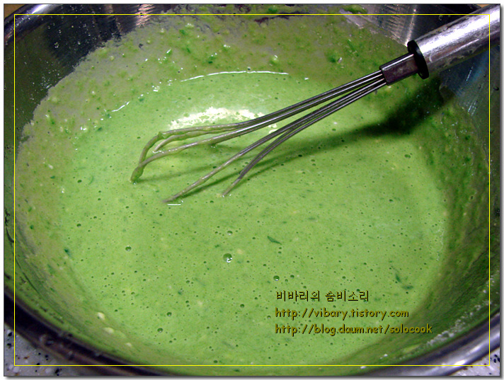 4, 이때 물은 1번 갈아놓은 부추물을 붓는다.
