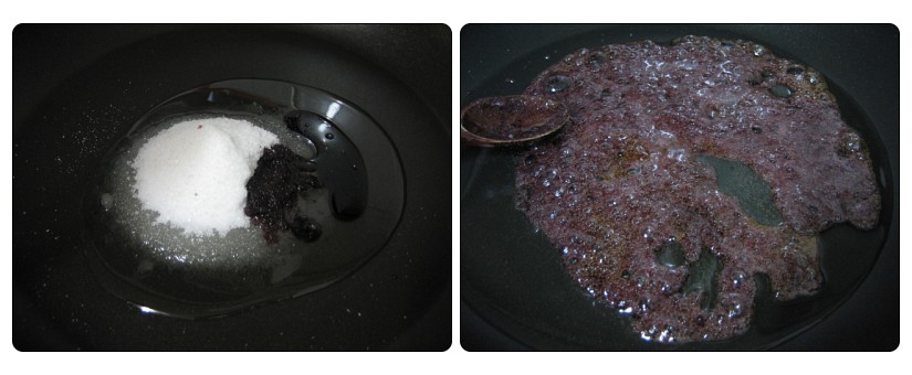 3. 오븐에서 밤이 구워지는 동안 황설탕 5큰술+카놀라유 6큰술을 넣고 시럽을 만들기